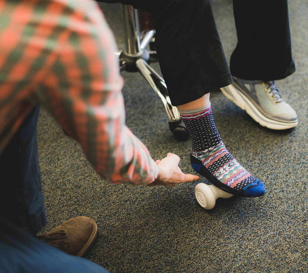 After a year of design exploration of working with therapists and elite athletes, the R3 concept was born. The R3 Orthopedic Foot Roller is designed to target specific areas of the foot to stretch the plantar fascia and intrinsic foot muscles to reduce soreness from tired feet. The unique, non-symmetrical shape of the R3 was designed to focus pressure on the inner, middle and outer parts of the foot. Discover all the ways to use the R3 on feet and other parts of the body.